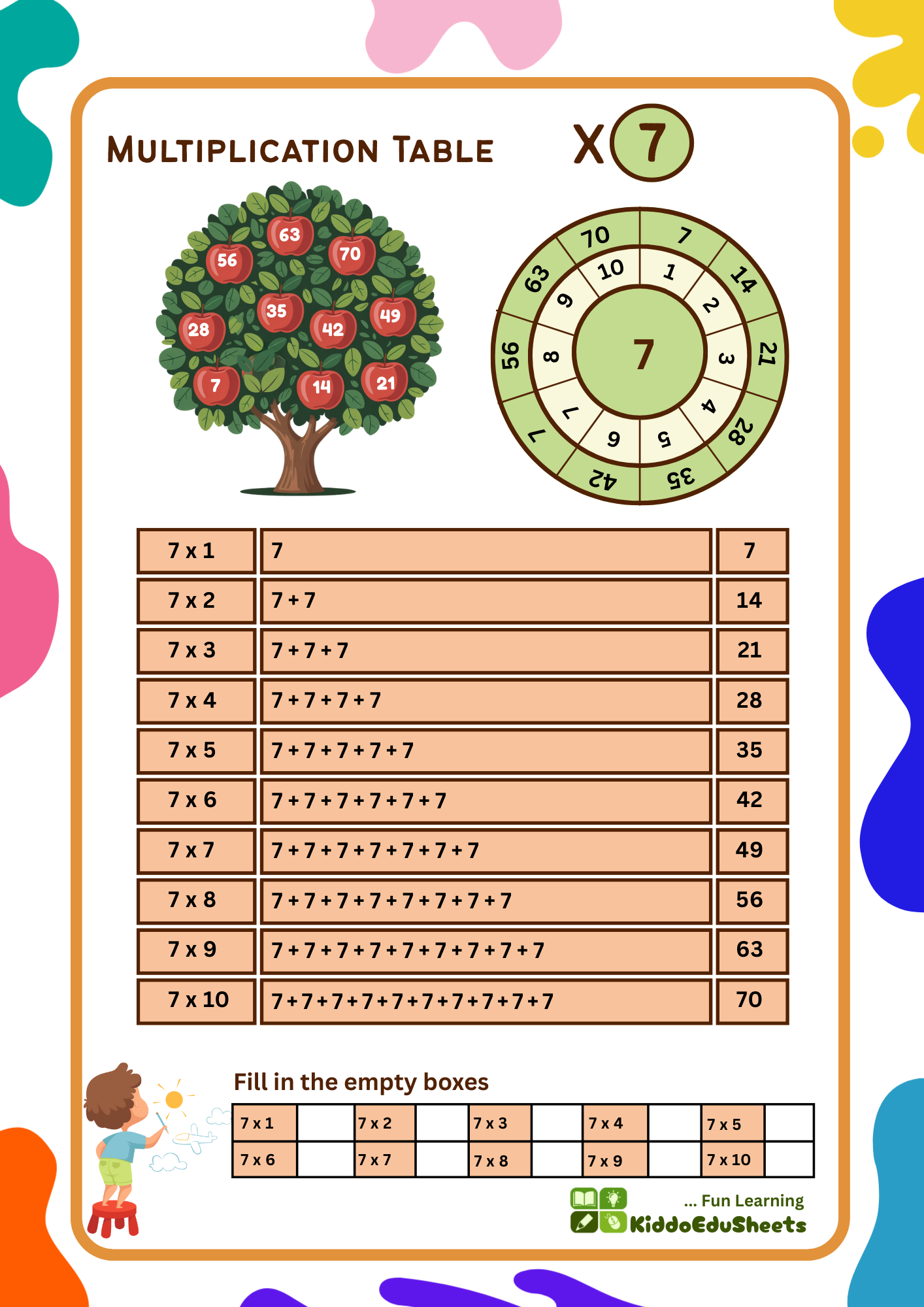 Unlock the world of numbers for your child with “10 Amazing Multiplication Tables,” a comprehensive and engaging learning tool designed to make multiplication a breeze. This book, a “Kiddo EduSheets” product, focuses on multiplication from 1 to 10, presenting each table in a fun and visually stimulating format. The core of the book is its unique approach, representing each multiplication table as an “apple tree” filled with the products. This creative visual aid helps children connect multiplication facts with a memorable image, reinforcing their learning in a playful way.